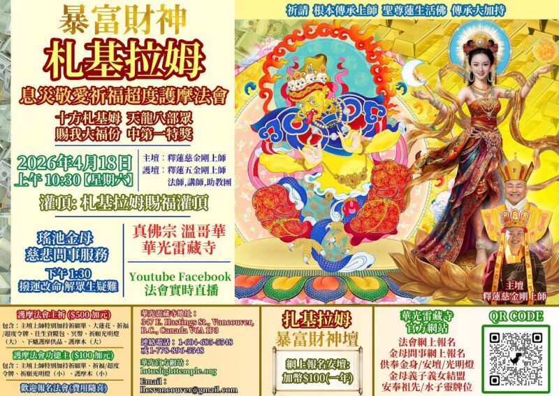 Apr 18, 2026 Zashi Lhamo the Sudden Wealth Goddess Fire Homa Ceremony at Lotus Light Temple
